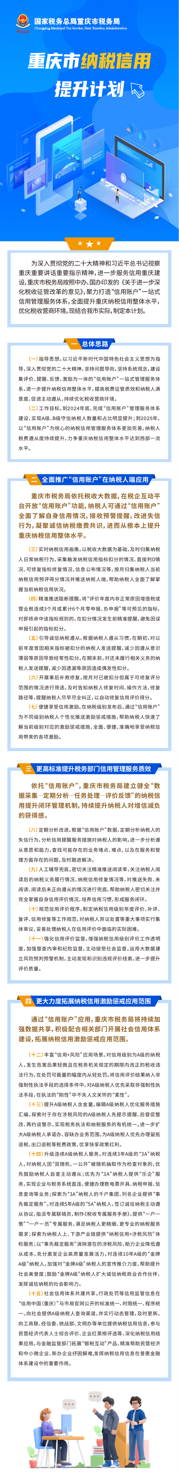 重庆发布《纳税信用提升计划》,全面推广纳税人“信用账户”